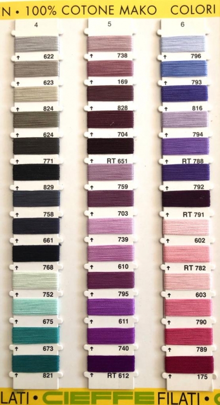 Il Puro Cotone Makò finezza 12 è un filato di altissima qualità proveniente dalle migliori piantagioni Egiziane. Il Filato di Puro Cotone Makò essendo Pettinato, Gasato e Mercerizzato risulta essere la migliore fibra opaca da impiegare nel ricamo della biancheria per la casa e per il bagno dove il suo aspetto naturale permette di creare lavori di alto pregio, ma può essere ampiamente utilizzato e con ottimi risultati anche nel ricamo su capi confezionati, patchwork e trapunte. Ideale per essere lavorato su qualsiasi tipo di macchina da ricamo il Puro Cotone Makò è disponibile in una vasta gamma di colori per i quali la maggior parte sono resistenti a tutti i lavaggi compreso cloro e candeggio poiché trattati con coloranti INDANTHRENE tuttavia quei colori classificati come REATTIVI (RT) vi consentono un lavaggio a 95° ma solo con detersivo normale che non contenga candeggianti come cloro, sbiancanti ottici o simili che potrebbero alterare la brillantezza dei colori.