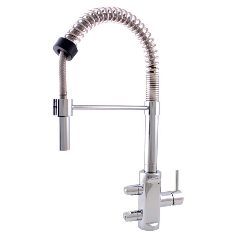 Miscelatore con mollone monocomando inox a 3/4/5 vie con attacco per acqua depurata.